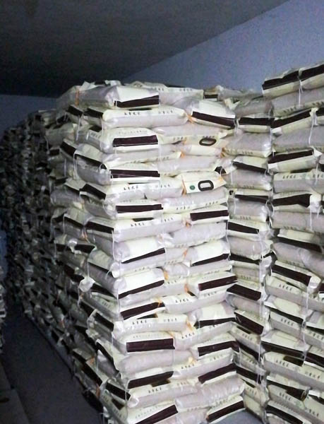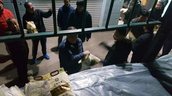 合理分組、各負其責、整齊有序,大米在工作人員手中傳遞,心手相傳的不僅僅是大米,更是信心和意志。