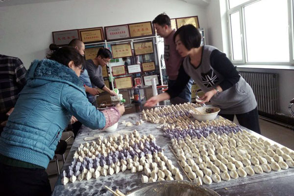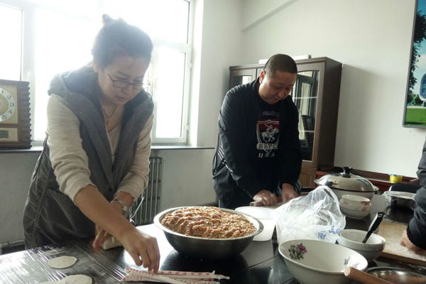 大家分工合作,你搟皮、我包餡,笑語(yǔ)不斷。