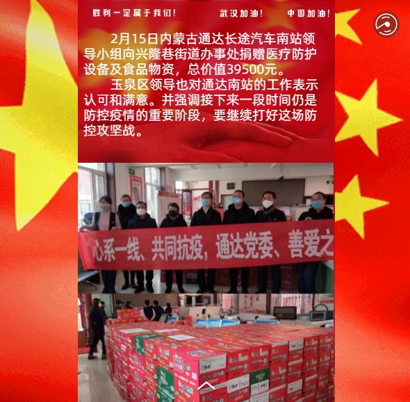 在新型冠狀病毒肺炎疫情肆虐神州大地之時(shí),在這個(gè)特殊的時(shí)期里,每個(gè)人都卷入了一場(chǎng)特殊的戰役。在疫情當前我們看到一批批勇敢的逆行者夜以繼日的堅守在一線(xiàn)崗位,保障著(zhù)你我健康安全,守護者大家的生活秩序。內蒙古通達實(shí)業(yè)股份有限公司強化責任擔當、積極響應、迅速行動(dòng),在做好各項防控措施的同時(shí)出資20萬(wàn)元善款,通過(guò)全市多個(gè)轄區內的街道辦事處進(jìn)行愛(ài)心物資捐贈活動(dòng),以表達通達公司對奮戰在疫情聯(lián)防聯(lián)控一線(xiàn)的工作人員最崇高的敬意!