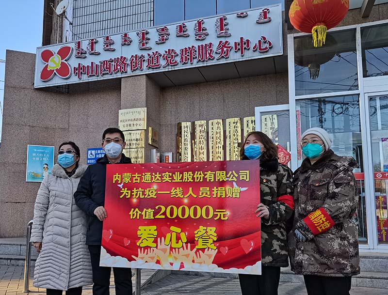 2022年3月4日,通達公司黨委、通達公司、聯(lián)合善愛(ài)之舟看望慰問(wèn)堅守在疫情防控一線(xiàn)的工作人員,并為中山西路辦事處捐贈2萬(wàn)元愛(ài)心餐。疫情發(fā)生以來(lái),感謝社區廣大一線(xiàn)工作人員沖鋒陷陣,以血肉之軀筑起健康安全的鋼鐵長(cháng)城。通達公司作為一個(gè)企業(yè),在社會(huì )需要我們的時(shí)候更應該有所擔當,用實(shí)際行動(dòng)彰顯溫暖和關(guān)愛(ài),感謝社區工作人員始終奮戰在疫情防控第一線(xiàn),為守護好居民的生命安全和平安健康付出不懈的努力。